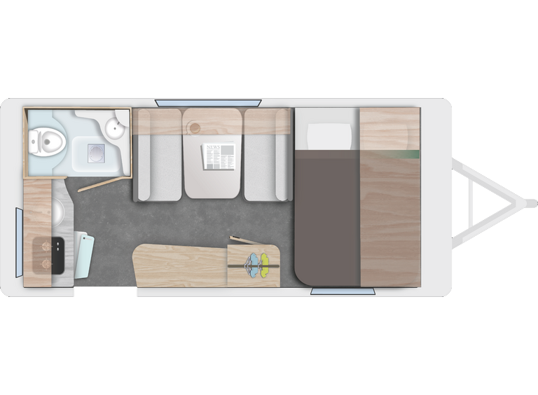 Een compacte, lichtgewicht caravan met een uitgekiende standaard uitrusting.