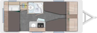 De Caravelair Alba 462 is een compacte, licht gewicht caravan voor 2 volwassenen (en eventueel 2 kinderen). Met 2 enkele bedden (V-bed) voorin, een standaard zit achter die omgetoverd kan worden in 2 slaapplekken (99 x 170 cm). Middenkeuken en midden toiletruimte voorzien van vast toilet en wastafel.