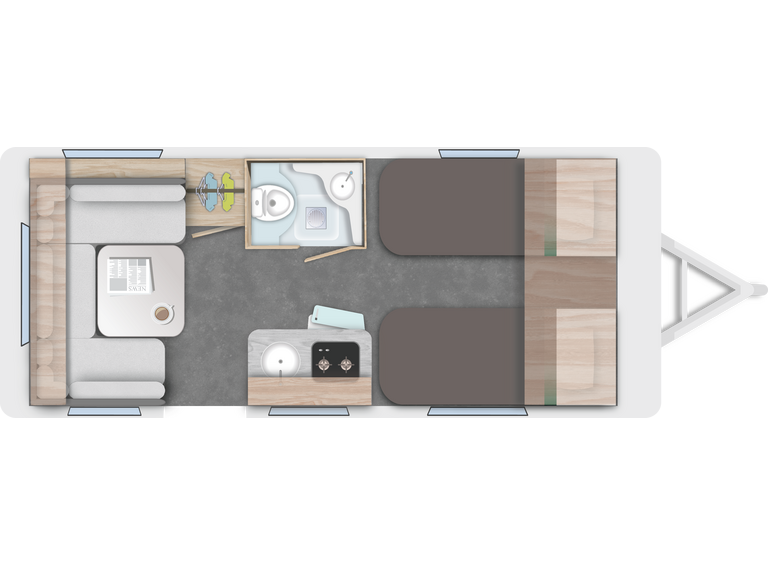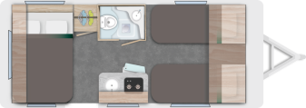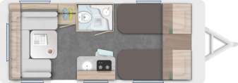 De Caravelair Sport-Line 492 is een ruime caravan met 2 enkele bedden voorin (met de mogelijkheid om er een groot bed van te maken), toiletruimte met vast toilet in het midden, middenkeuken en achterin een ruime rondzit.