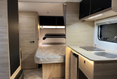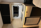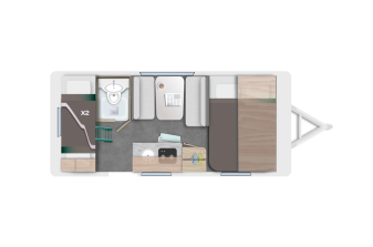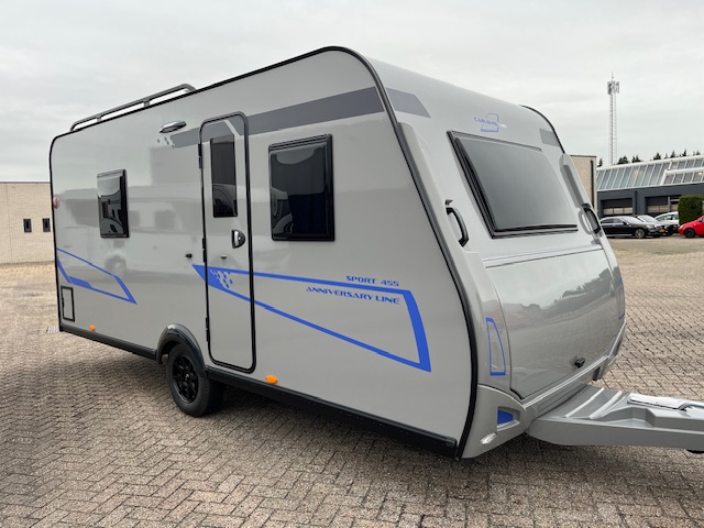 De nieuwe Caravelair Sport Line biedt een hoog uitrustingsniveau (Alko 3004 stabilisator, schokdempers, boiler, groot dakluik, groot serviceluik, comfort matrassen, vaste watertank en afvalwatertank) in combinatie met een moderne uitstraling. De Caravelair Sport Line 455 heeft een nieuw harmonieus interieur in Scandinavische stijl. Warme hout-tinten worden subtiel gecombineerd met meer eigentijdse tinten en het geheel wordt benadrukt door de nieuwe donkere bekledingsstof. De Sport Line 455 is een robuuste caravan met een nieuw kunststof voorfront, stoere achterbumper met grote achterlichten, strakke donkere ramen en polyester dak en zijbeplating (hagelbestendig), geheel uitgevoerd in het grijs met zwarte accenten.