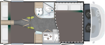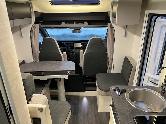 Deze Chausson halfintegraal is met zijn 6.99 meter de ideale reisgenoot voor 2-4 personen. Ruime dinette en 2 draaibare cabinestoelen. Compacte keuken met 2-pits kooktoestel, spoelbak met warm en koud water en een ruime koelkast met vriesvak. Natte ruimte met met wastafel, douche en WC. Enkele bedden achterin en een groot hefbed boven de zitgroep.