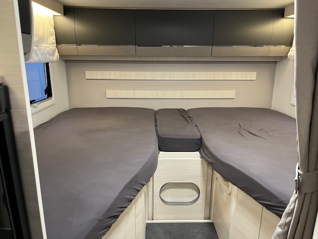 Chaussin Titanium 627 GA halfintegraal camper met enkele bedden en hefbed.